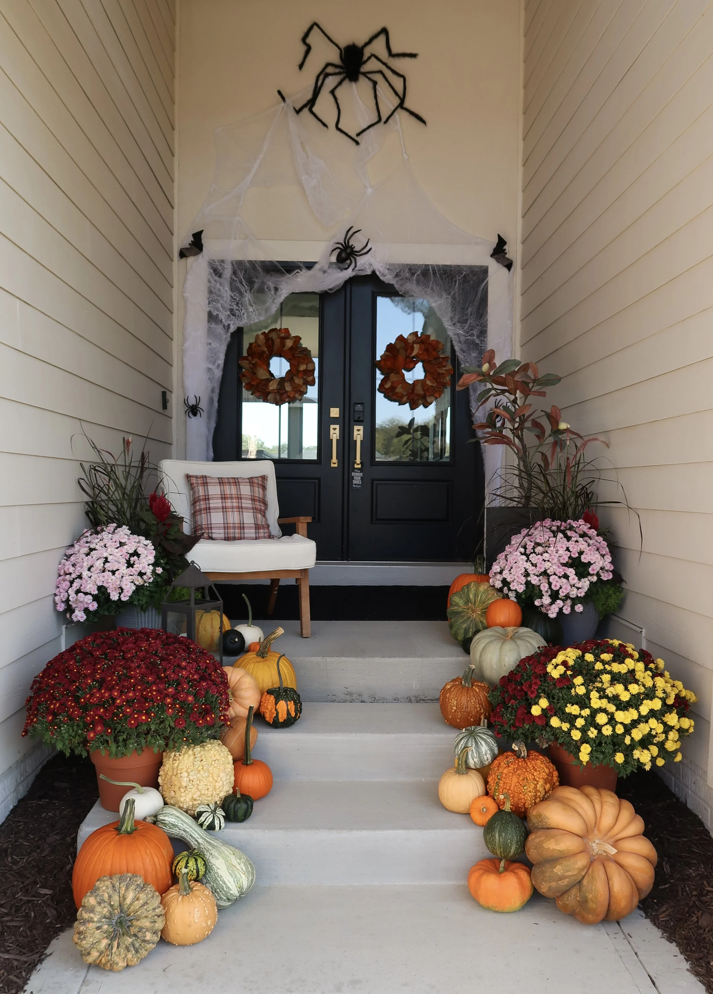 Gourdgeous Pumpkins, Oh My! Package InspirationThis is a great package for a medium to large porch with stairs. Add a broomstick cornstalk or two if you have columns you want to showcase! Porch Perfection Package with add-ins Porch Perfect Package Custom Package